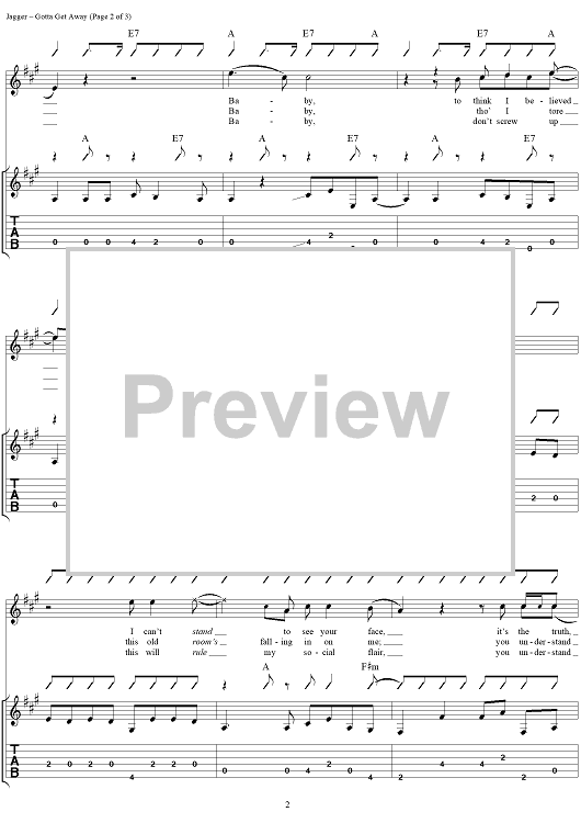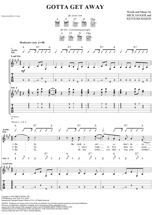 Digital Sheet Music for Gotta Get Away by Keith Richards, The Rolling Stones, Mick Jagger scored for Guitar Tab/Vocal; id:316261