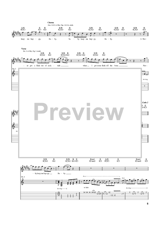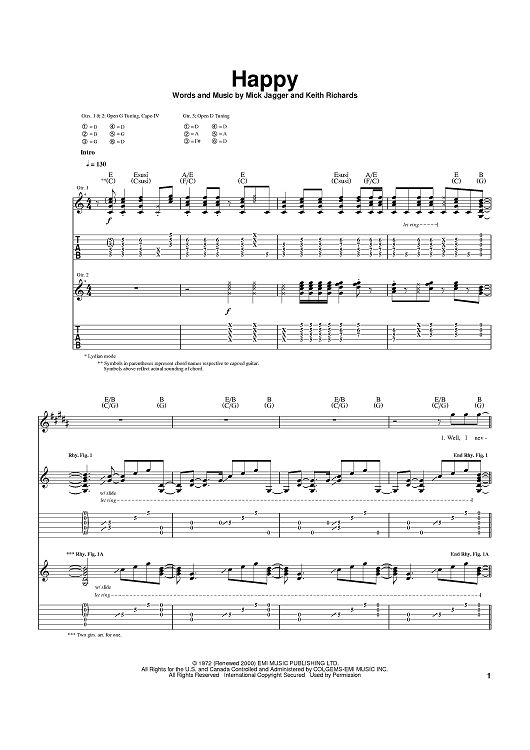 Digital Sheet Music for Happy by Keith Richards, The Rolling Stones, Mick Jagger scored for Guitar Tab; id:370134