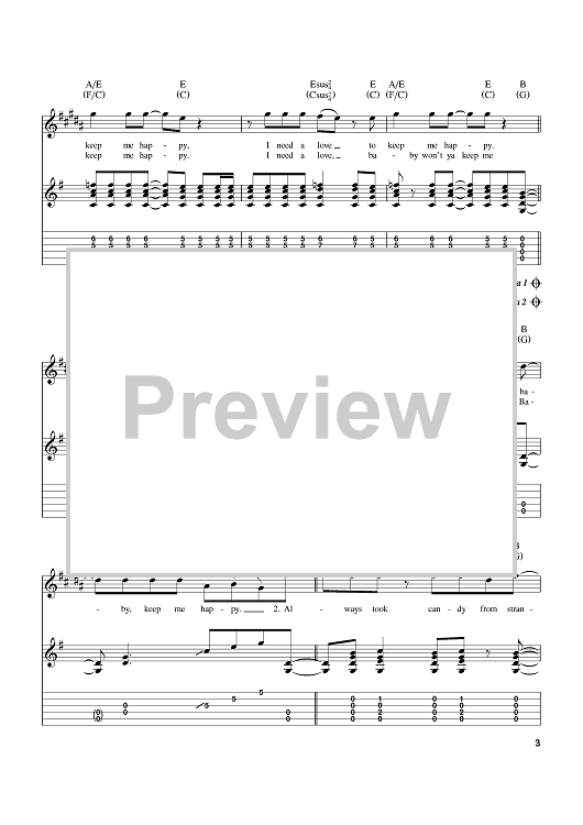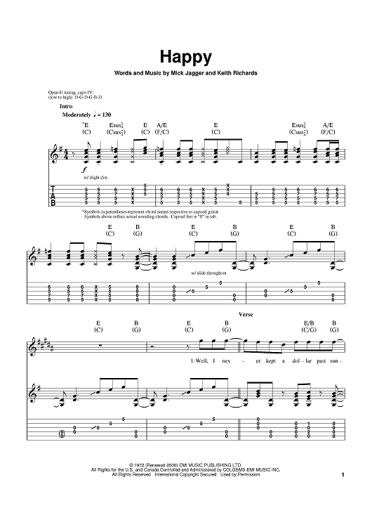 Digital Sheet Music for Happy by Keith Richards, The Rolling Stones, Mick Jagger scored for Guitar Tab; id:396604