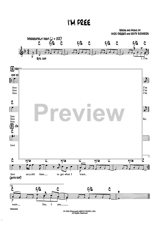 Digital Sheet Music for I'm Free by Keith Richards, The Rolling Stones, Mick Jagger scored for Lead Sheet; id:437353