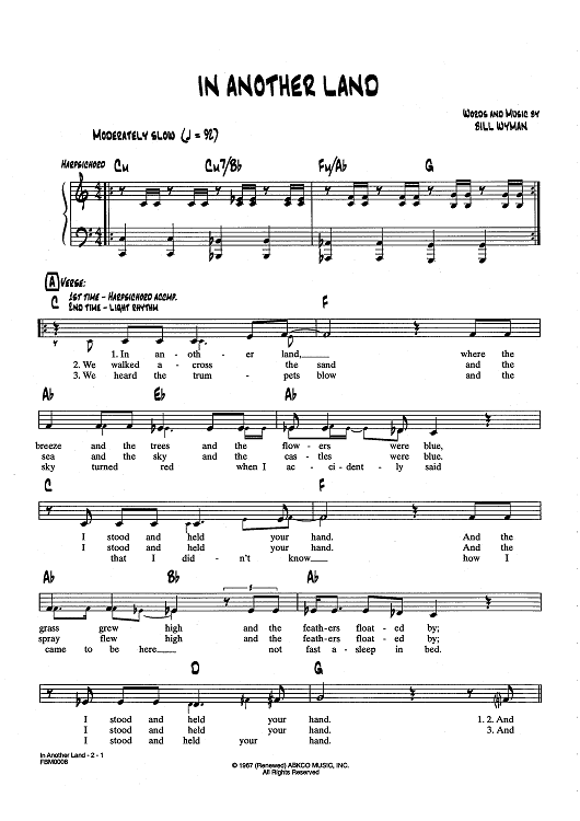Digital Sheet Music for In Another Land by The Rolling Stones, Bill Wyman scored for Lead Sheet; id:437355
