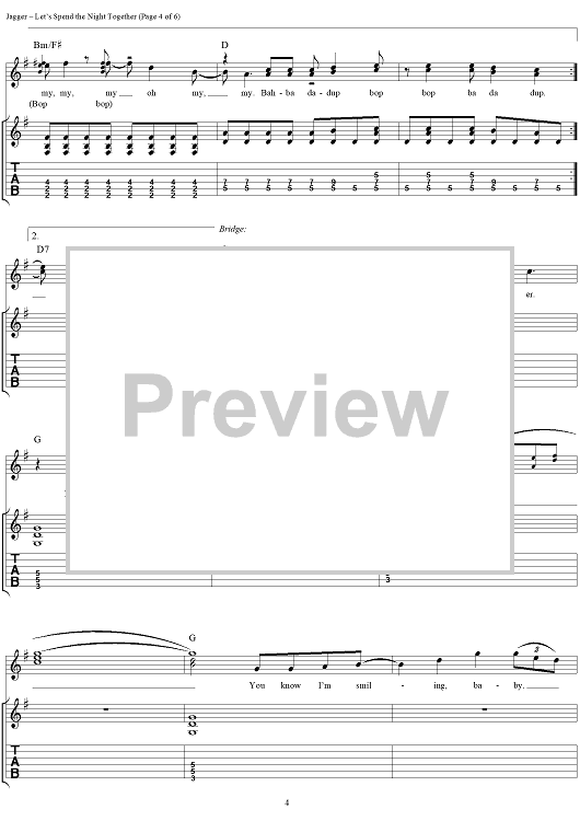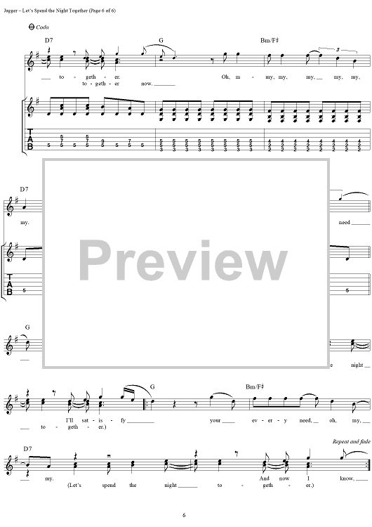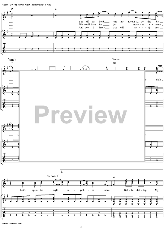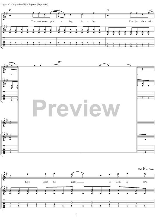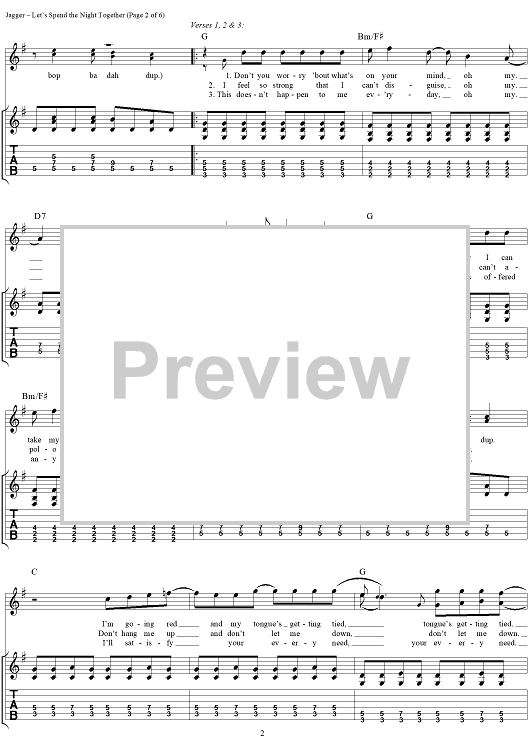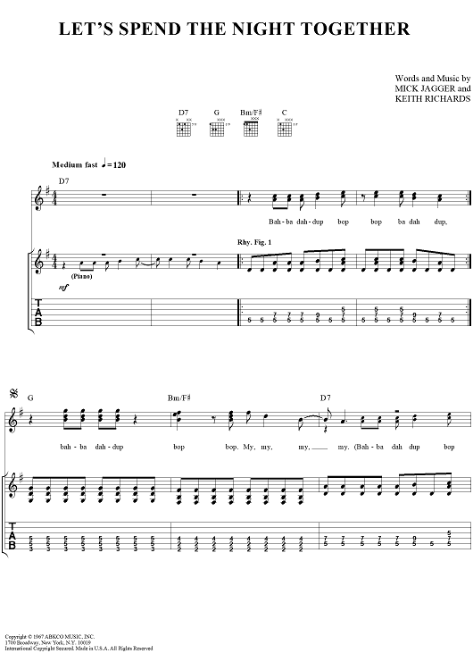 Digital Sheet Music for Let's Spend the Night Together by Keith Richards, The Rolling Stones, Mick Jagger scored for Guitar Tab/Vocal; id:316264