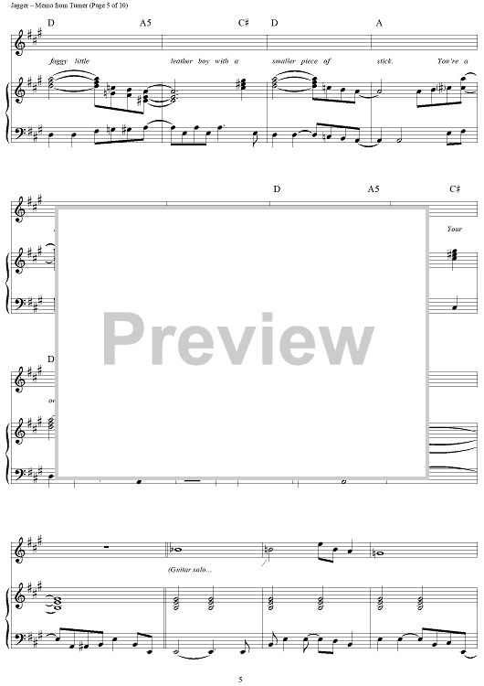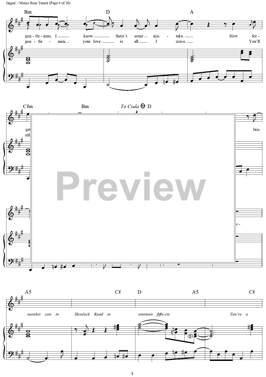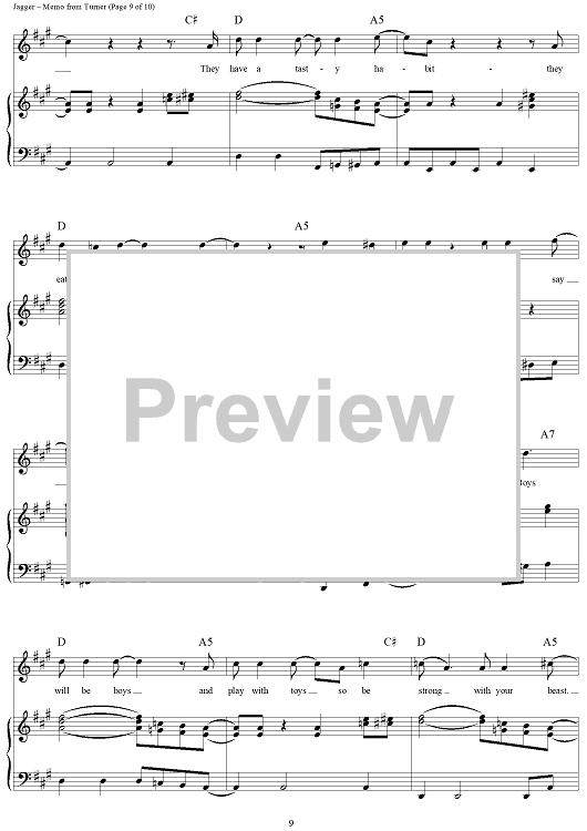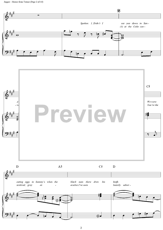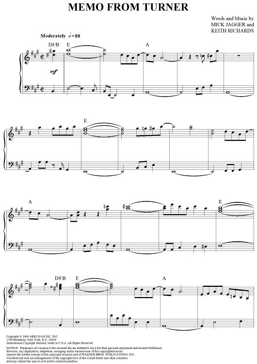 Digital Sheet Music for Memo from Turner by Keith Richards, The Rolling Stones, Mick Jagger scored for Piano/Vocal/Chords; id:315833