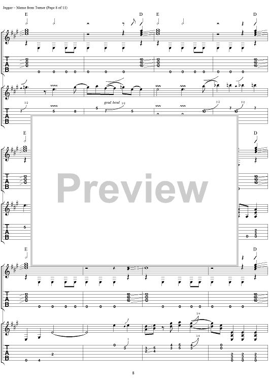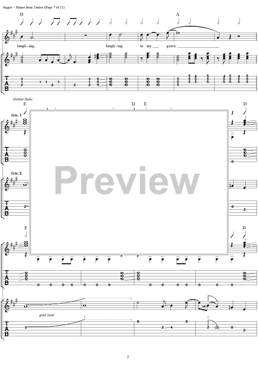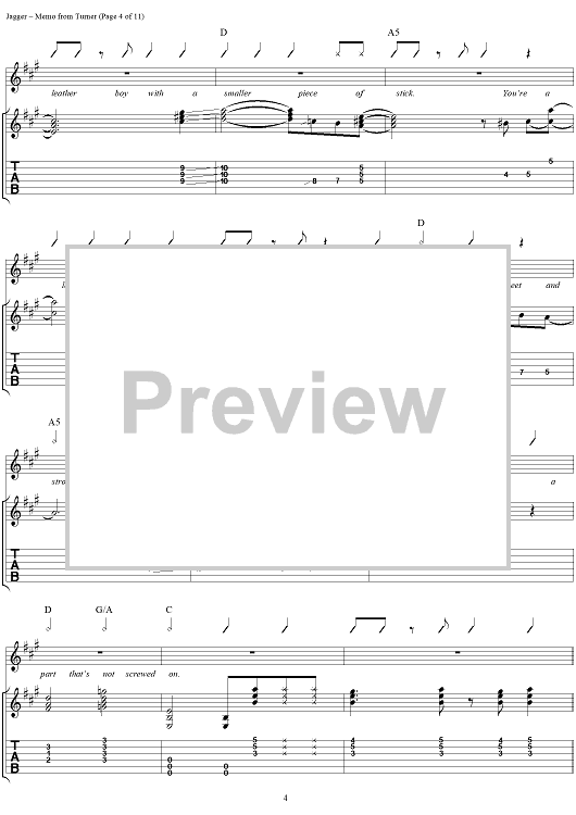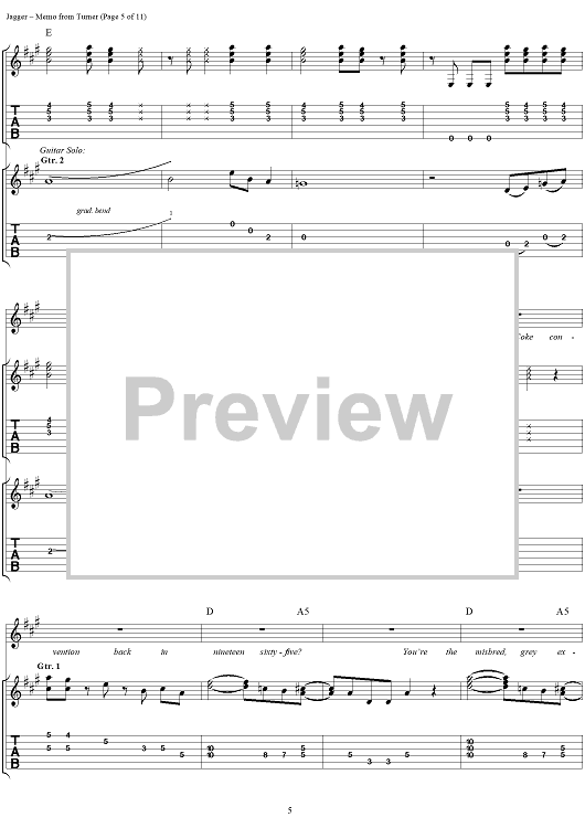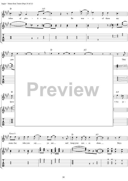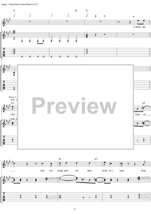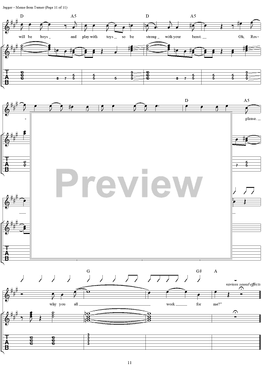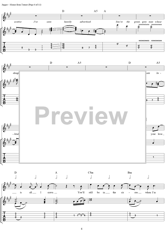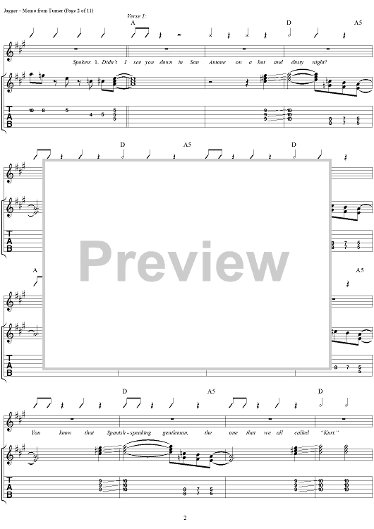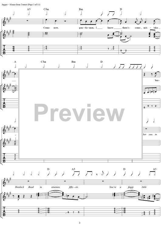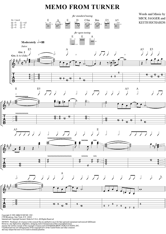 Digital Sheet Music for Memo from Turner by Keith Richards, The Rolling Stones, Mick Jagger scored for Guitar Tab/Vocal; id:316403