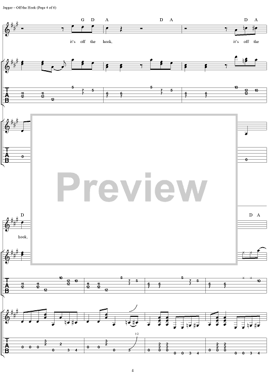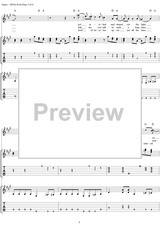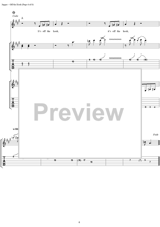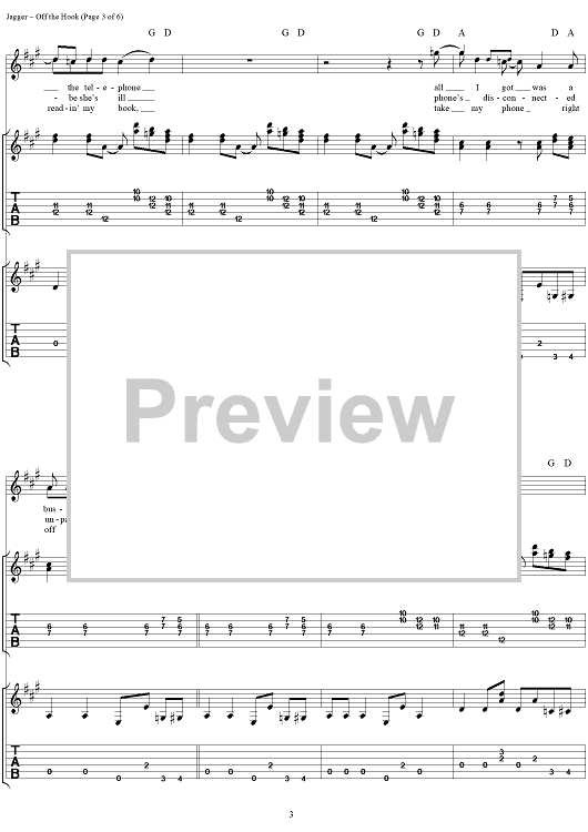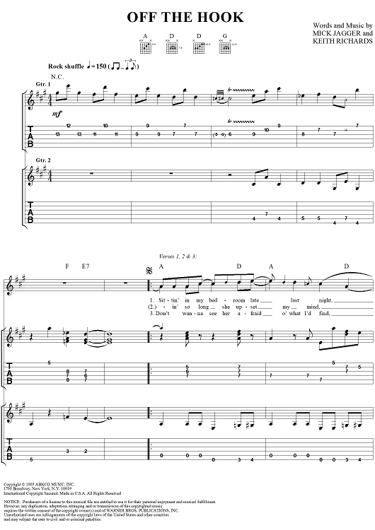 Digital Sheet Music for Off the Hook by Keith Richards, The Rolling Stones, Mick Jagger scored for Guitar Tab/Vocal; id:316380