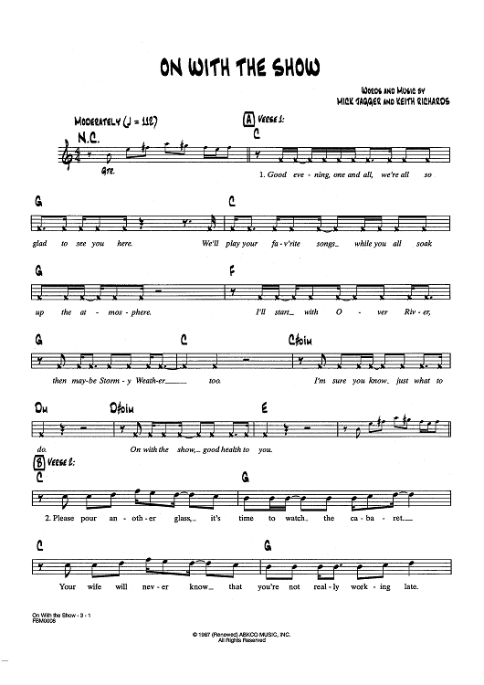 Digital Sheet Music for On WIth The Show by Keith Richards, The Rolling Stones, Mick Jagger scored for Lead Sheet; id:437377