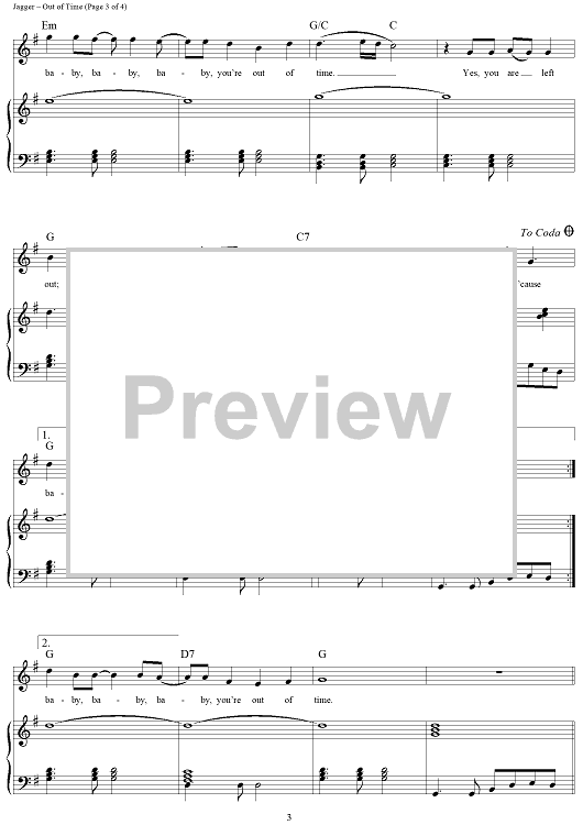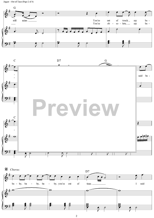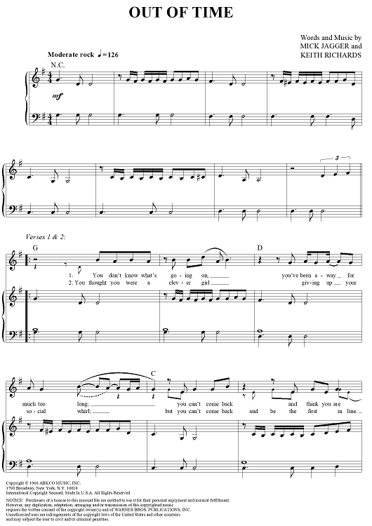 Digital Sheet Music for Out of Time by Keith Richards, The Rolling Stones, Mick Jagger scored for Piano/Vocal/Chords; id:315841