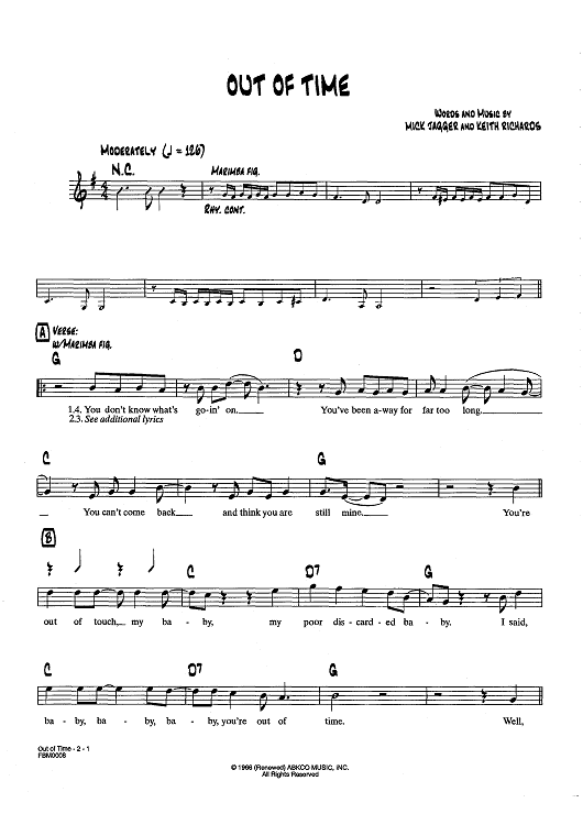 Digital Sheet Music for Out Of Time by Keith Richards, The Rolling Stones, Mick Jagger scored for Lead Sheet; id:437378
