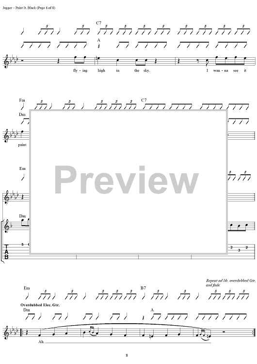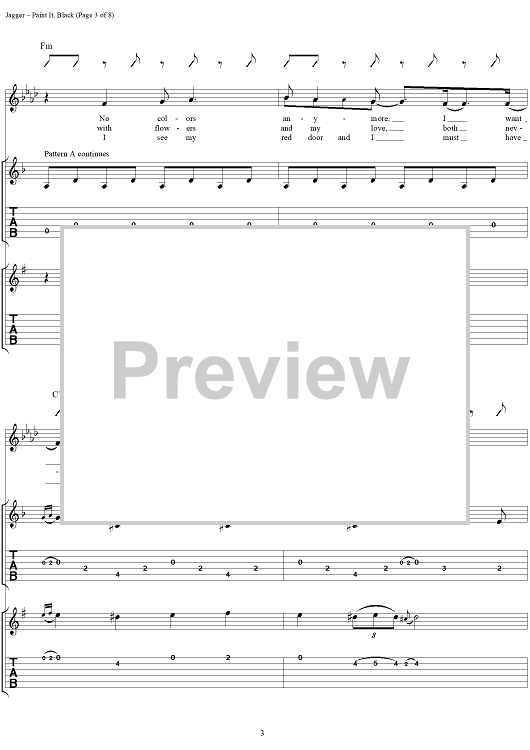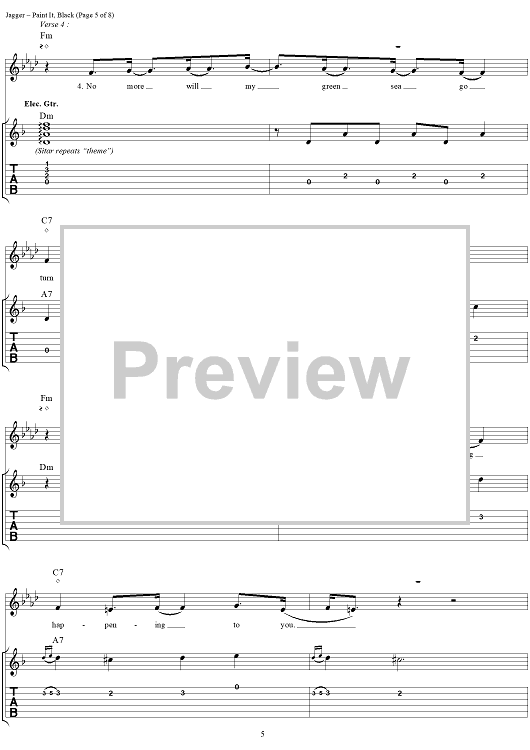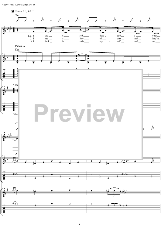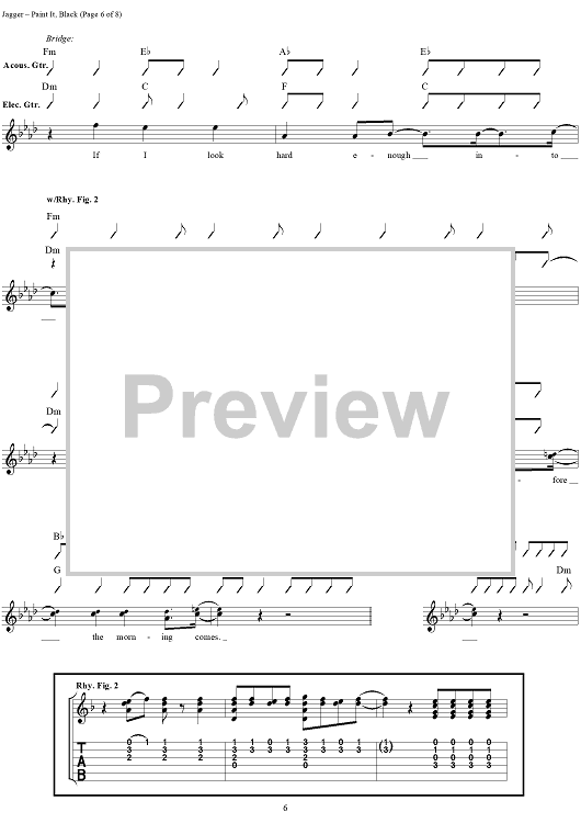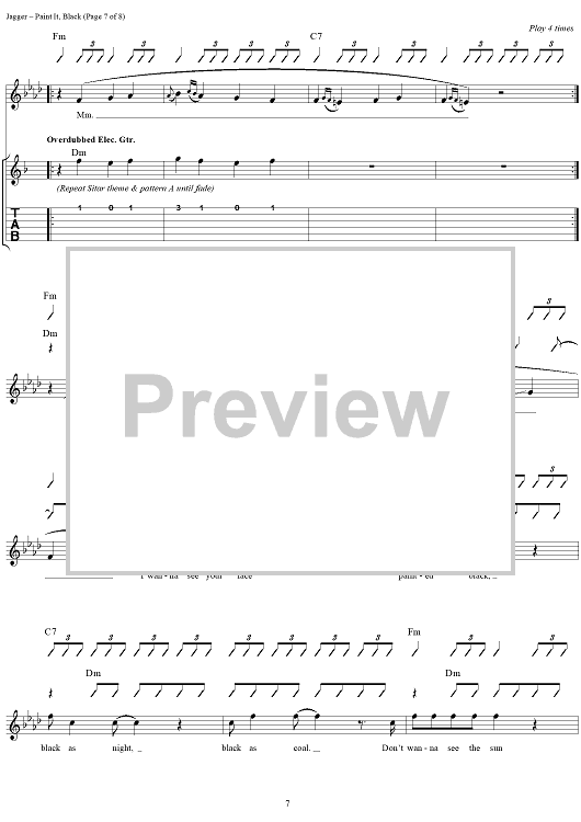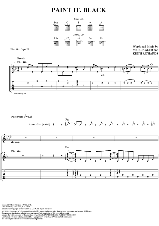 Digital Sheet Music for Paint It, Black by Keith Richards, The Rolling Stones, Mick Jagger scored for Guitar Tab/Vocal; id:316386