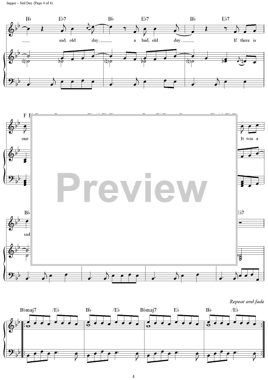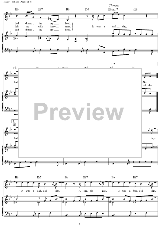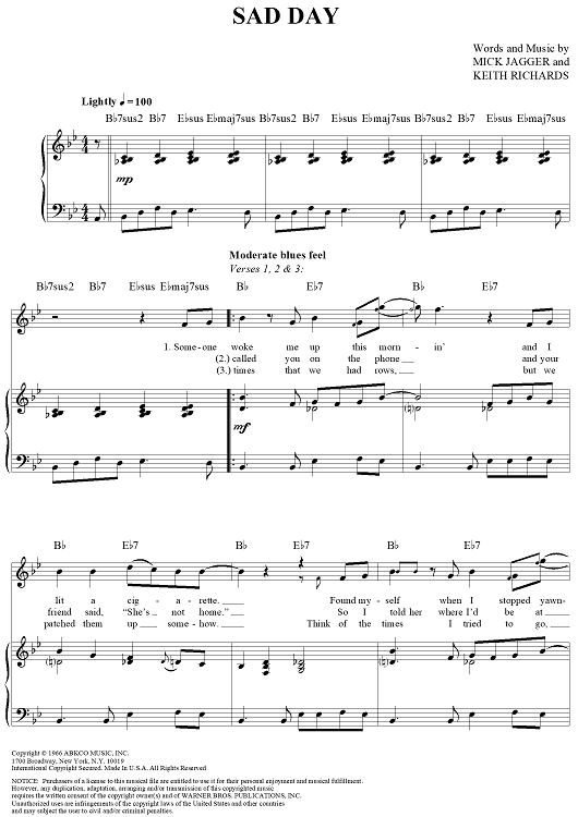 Digital Sheet Music for Sad Day by Keith Richards, The Rolling Stones, Mick Jagger scored for Piano/Vocal/Chords; id:315711