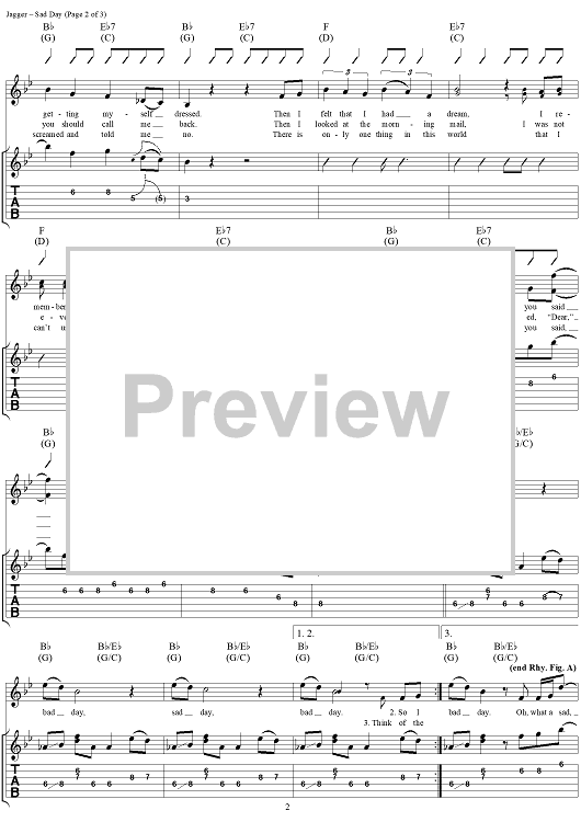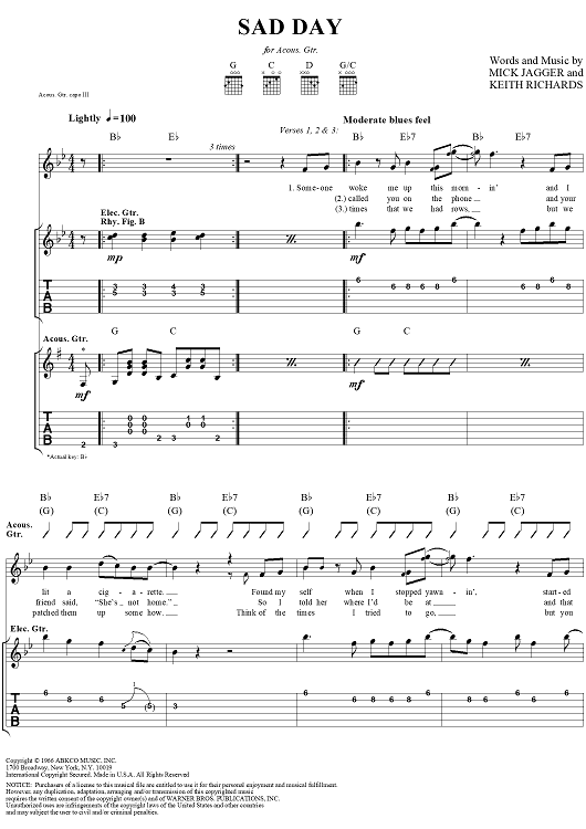 Digital Sheet Music for Sad Day by Keith Richards, The Rolling Stones, Mick Jagger scored for Guitar Tab/Vocal; id:316262