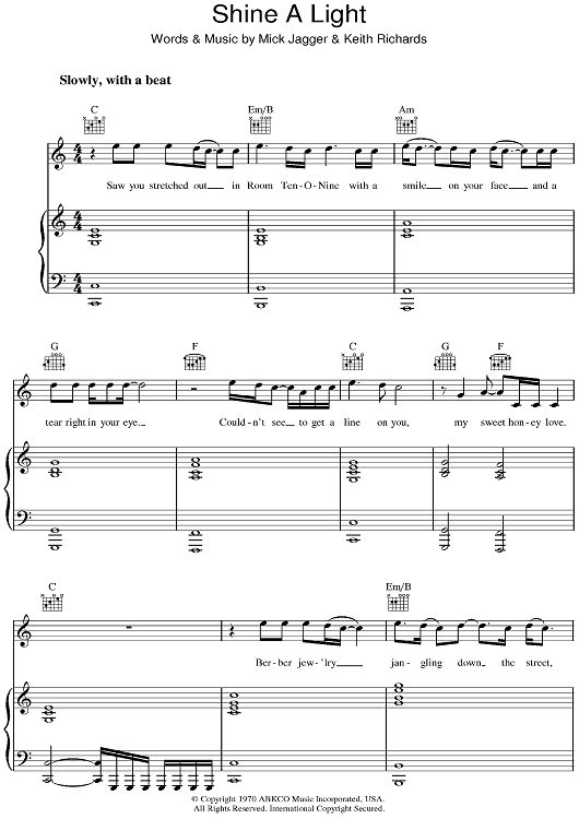 Digital Sheet Music for Shine A Light by Keith Richards, The Rolling Stones, Mick Jagger scored for Piano/Vocal/Chords; id:394251