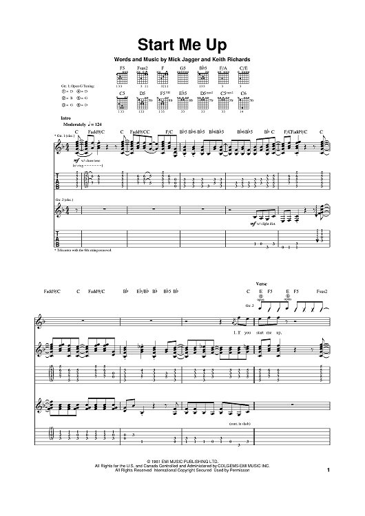 Digital Sheet Music for Start Me Up by Keith Richards, The Rolling Stones, Mick Jagger scored for Guitar Tab; id:367896
