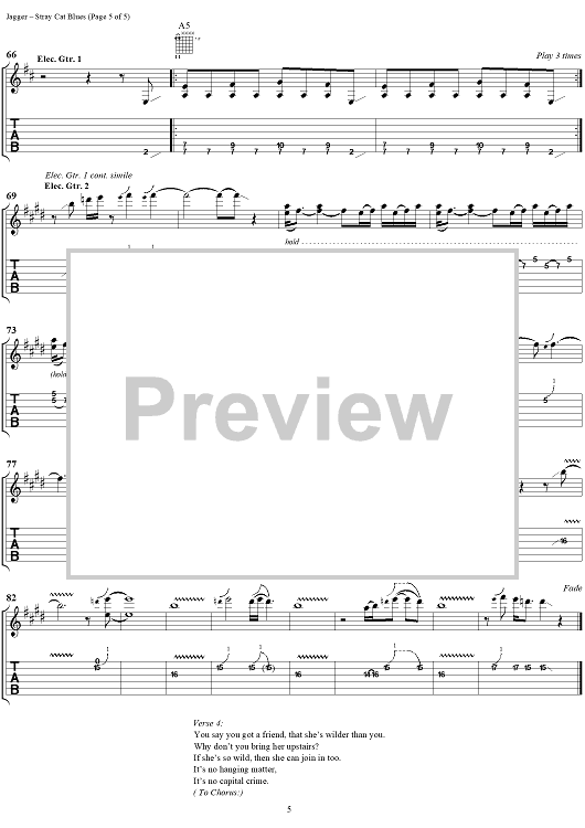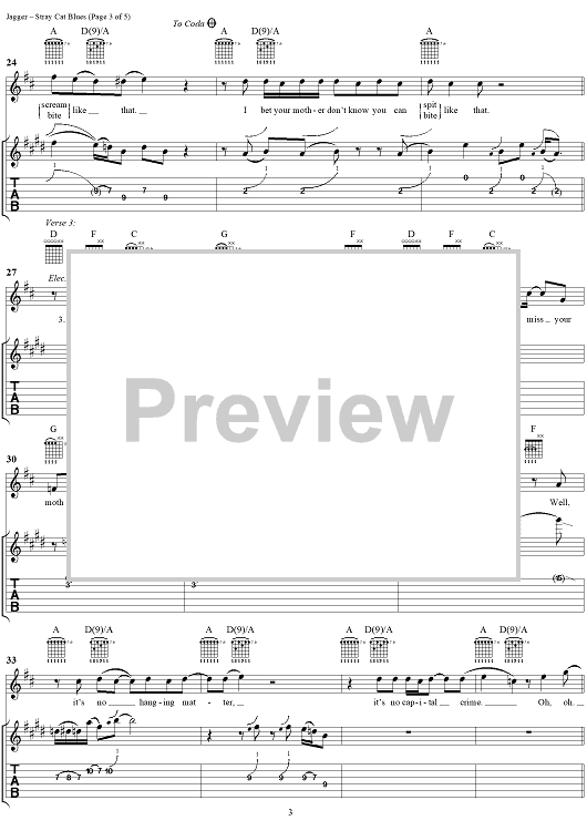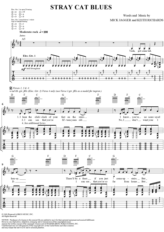 "Stray Cat Blues" Sheet Music by The Rolling Stones