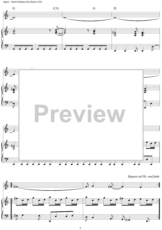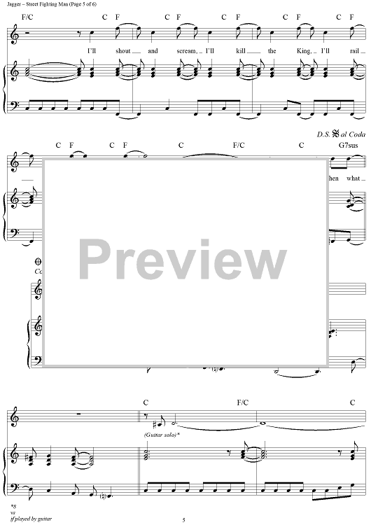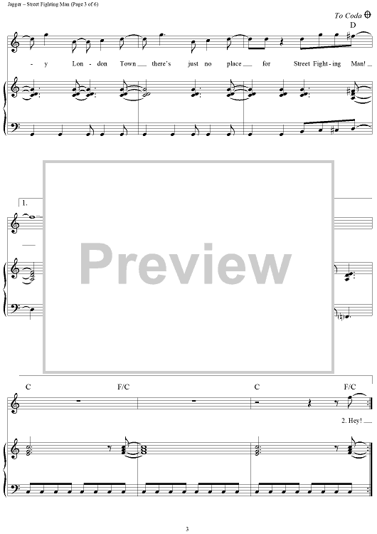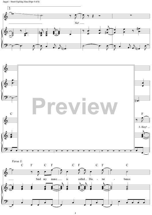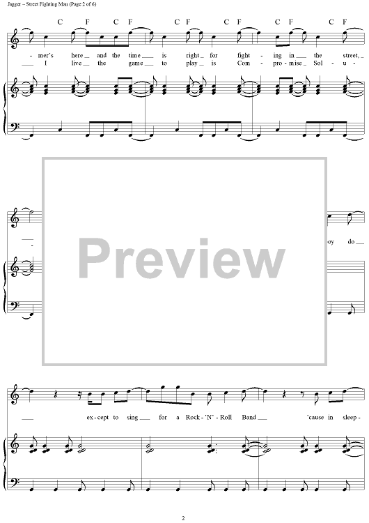 Digital Sheet Music for Street Fighting Man by Keith Richards, The Rolling Stones, Mick Jagger scored for Piano/Vocal/Chords; id:315835