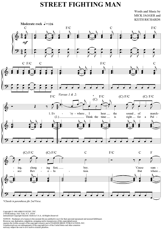 "Street Fighting Man" Sheet Music by The Rolling Stones