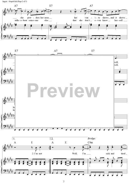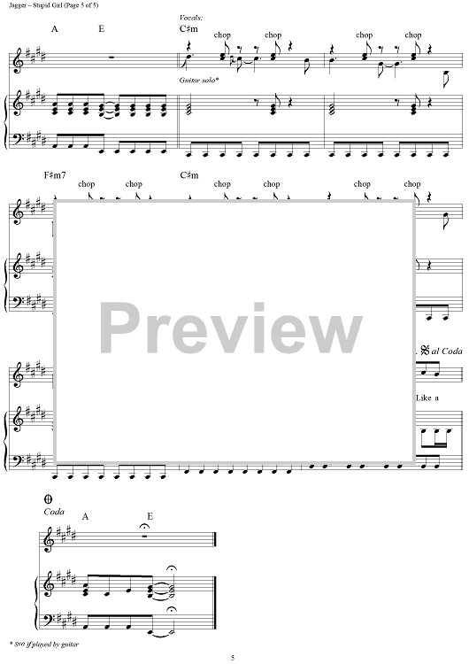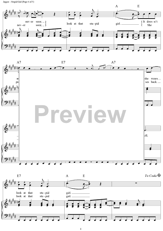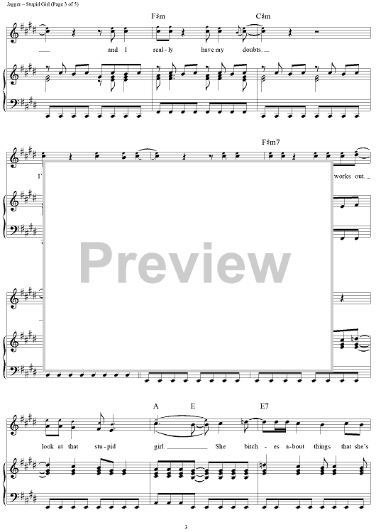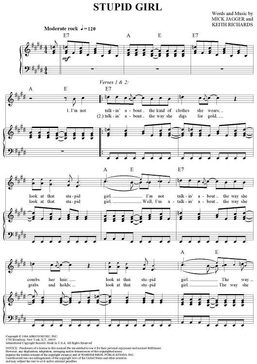 Digital Sheet Music for Stupid Girl by Keith Richards, The Rolling Stones, Mick Jagger scored for Piano/Vocal/Chords; id:315720