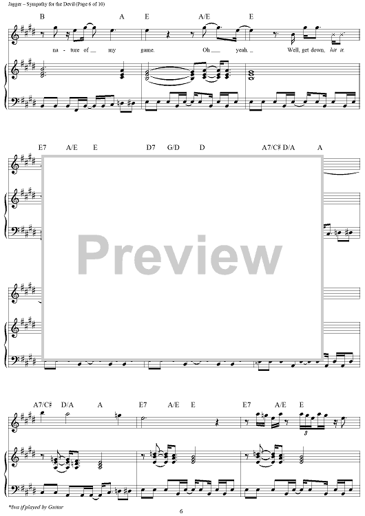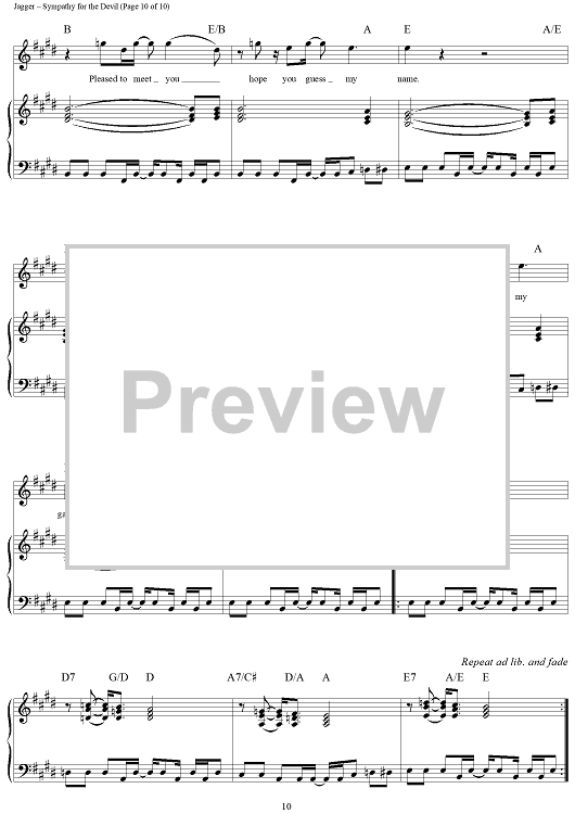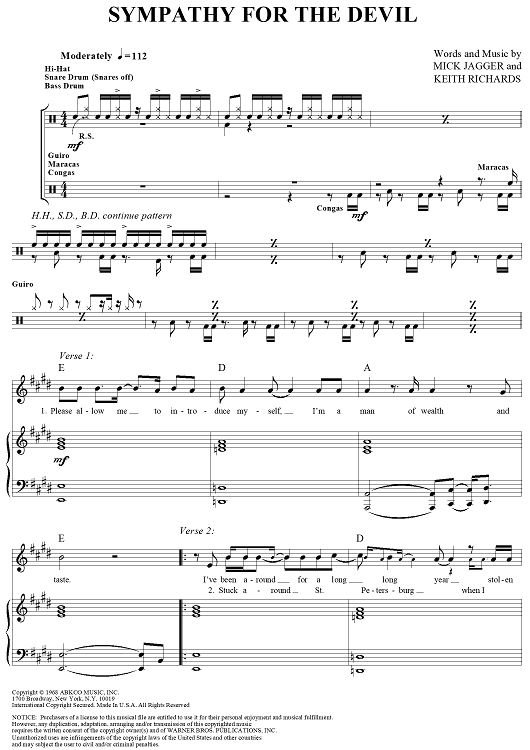 "Sympathy for the Devil" Sheet Music by The Rolling Stones