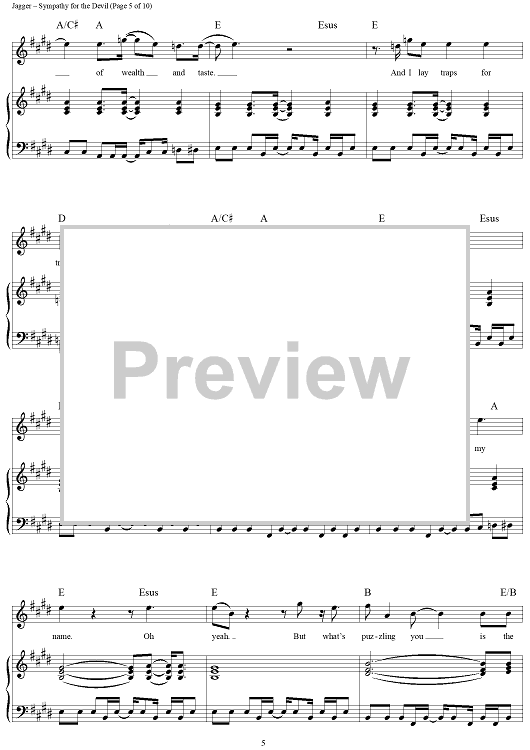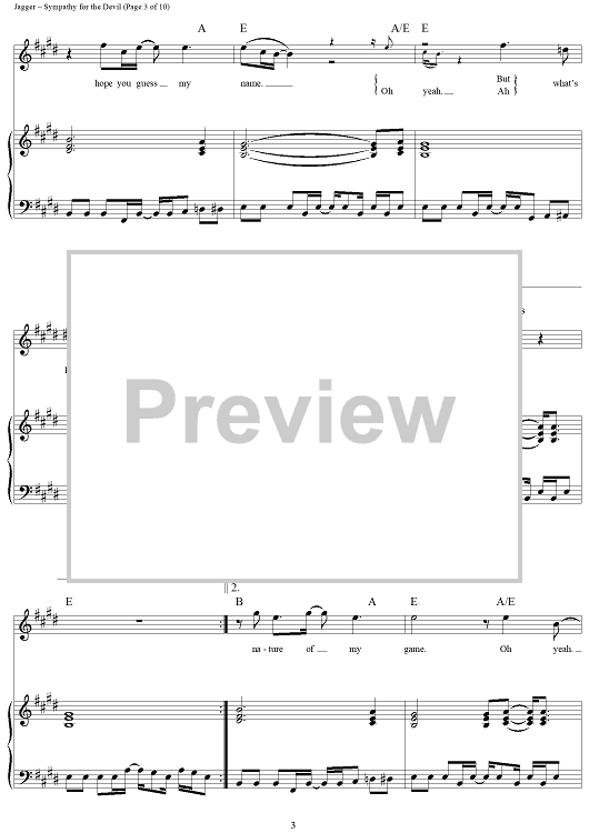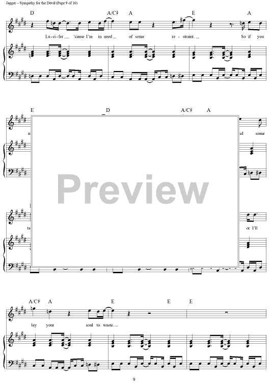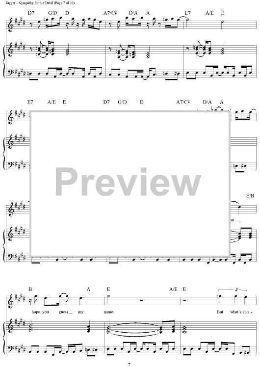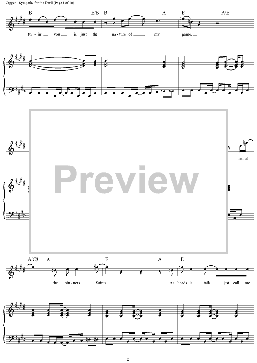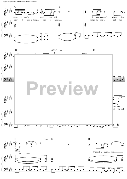 Digital Sheet Music for Sympathy for the Devil by Keith Richards, The Rolling Stones, Mick Jagger scored for Piano/Vocal/Chords; id:315843