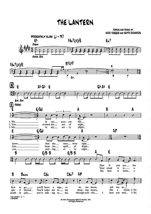 Digital Sheet Music for The Lantern by Keith Richards, The Rolling Stones, Mick Jagger scored for Lead Sheet; id:437381