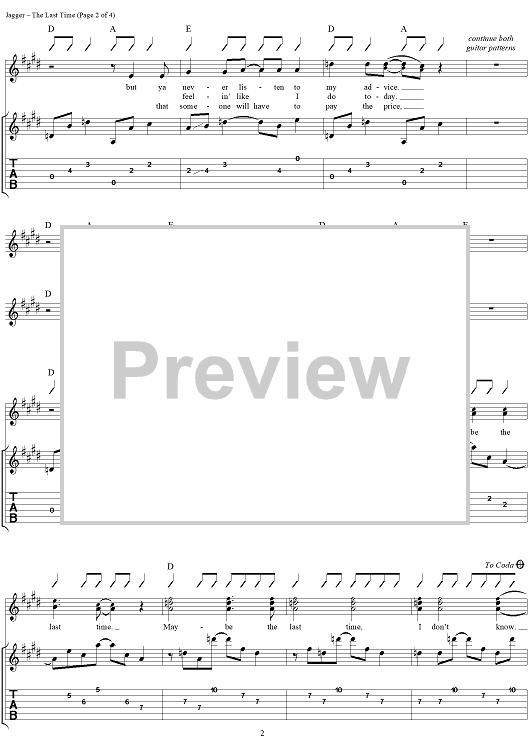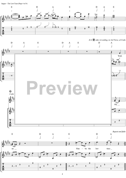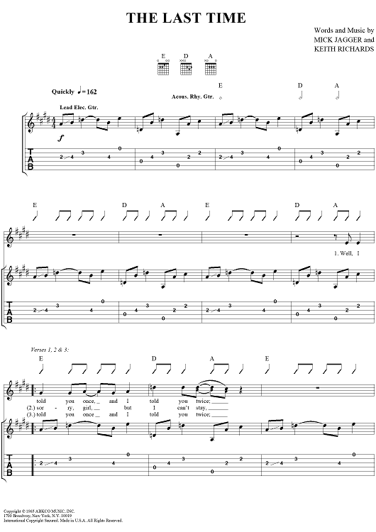 Digital Sheet Music for The Last Time by Keith Richards, The Rolling Stones, Mick Jagger scored for Guitar Tab/Vocal; id:316382