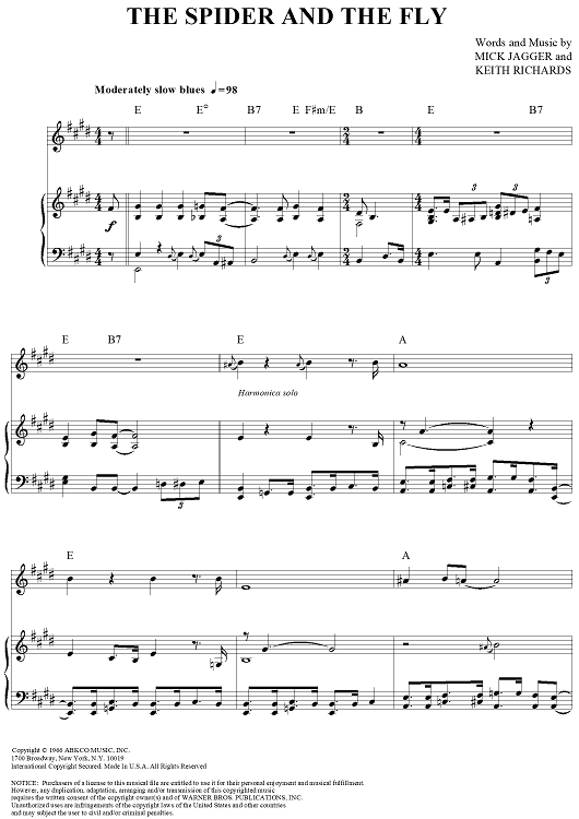 Digital Sheet Music for The Spider and the Fly by Keith Richards, The Rolling Stones, Mick Jagger scored for Piano/Vocal/Chords; id:315701