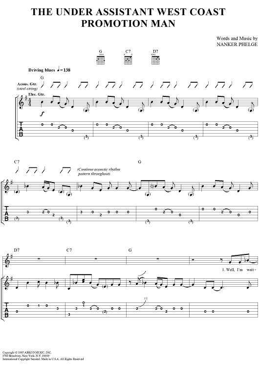 Digital Sheet Music for The Under Assistant West Coast Promotion Man by The Rolling Stones, Nanker Phelge scored for Guitar Tab/Vocal; id:316178