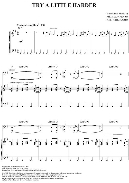Digital Sheet Music for Try a Little Harder by Keith Richards, The Rolling Stones, Mick Jagger scored for Piano/Vocal/Chords; id:315844