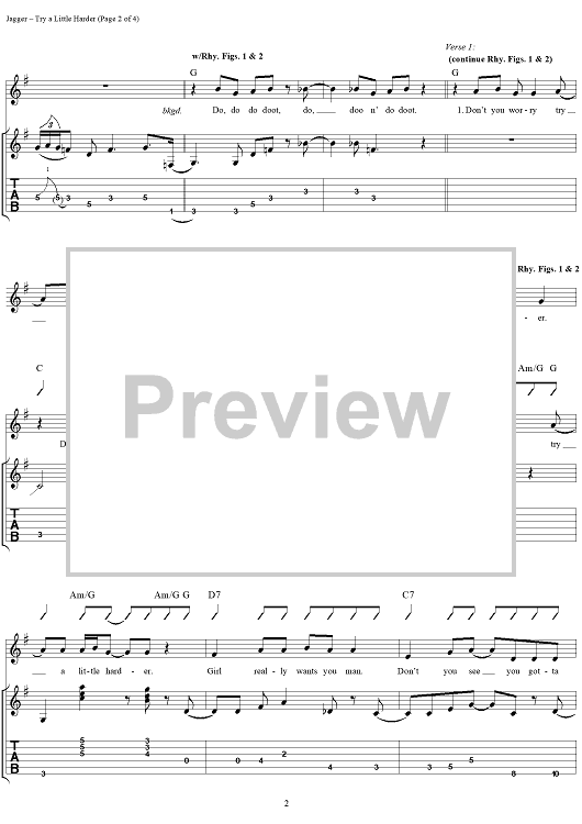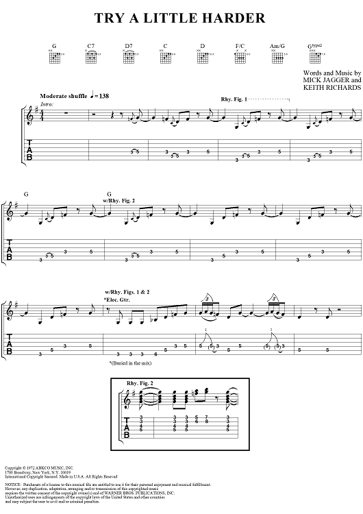 Digital Sheet Music for Try a Little Harder by Keith Richards, The Rolling Stones, Mick Jagger scored for Guitar Tab/Vocal; id:316267