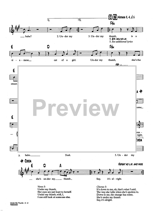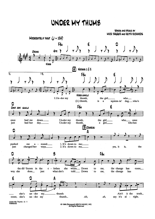 Digital Sheet Music for Under My Thumb by Keith Richards, The Rolling Stones, Mick Jagger scored for Lead Sheet; id:437621