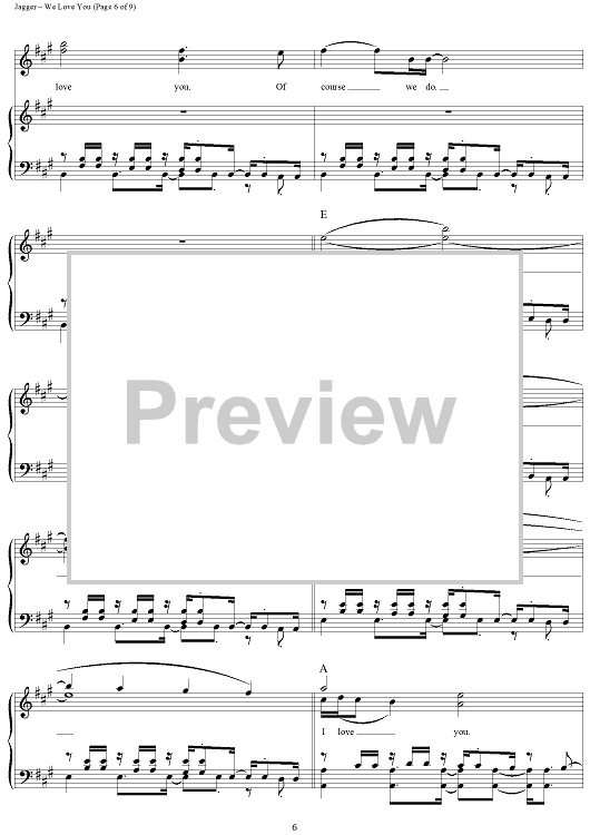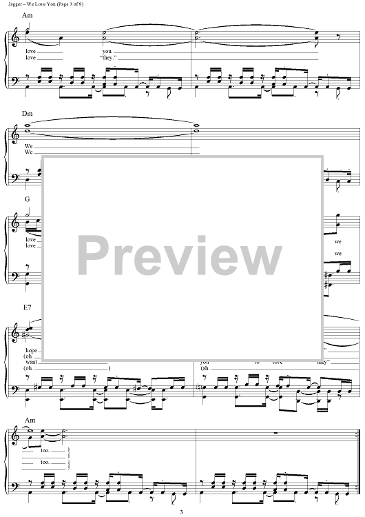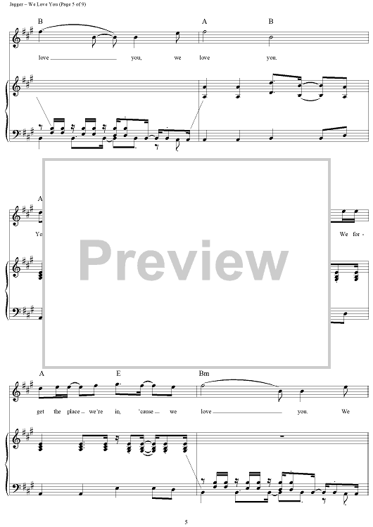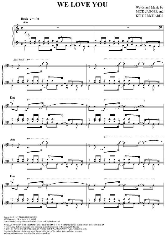 Digital Sheet Music for We Love You by Keith Richards, The Rolling Stones, Mick Jagger scored for Piano/Vocal/Chords; id:315825