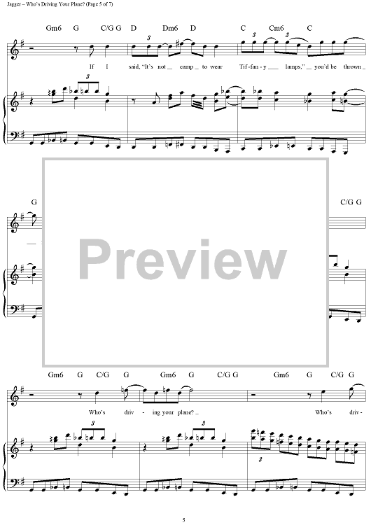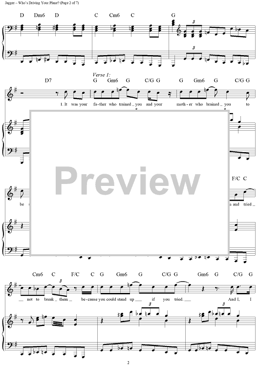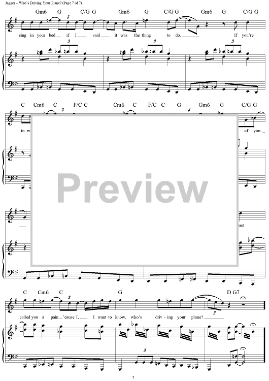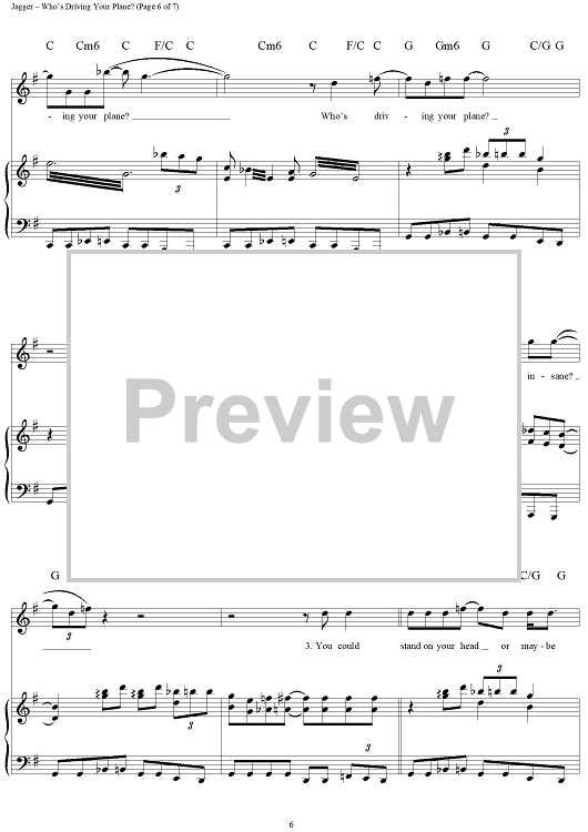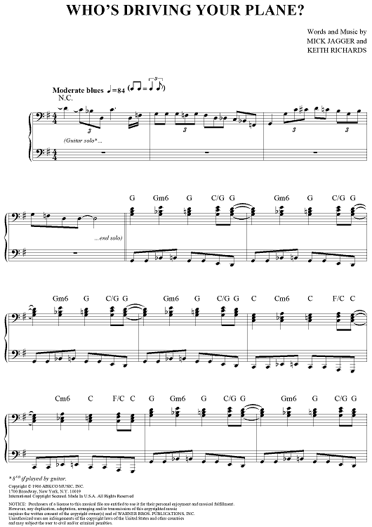 Digital Sheet Music for Who's Driving Your Plane? by Keith Richards, The Rolling Stones, Mick Jagger scored for Piano/Vocal/Chords; id:315822