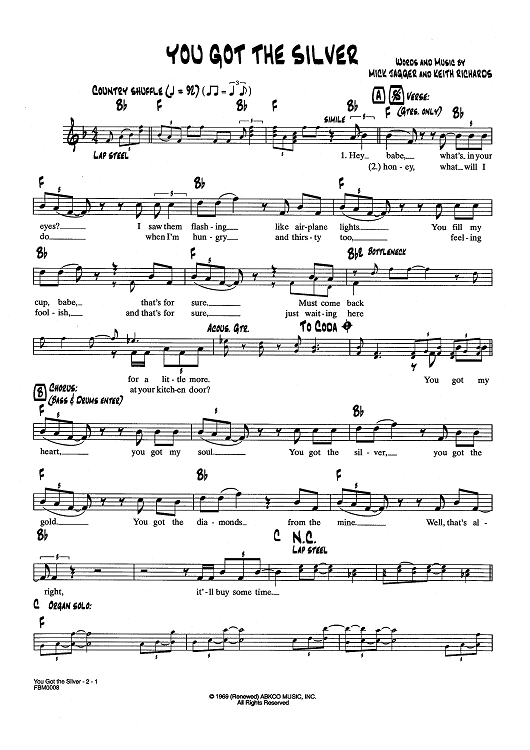 Digital Sheet Music for You Got The Silver by Keith Richards, The Rolling Stones, Mick Jagger scored for Lead Sheet; id:437615