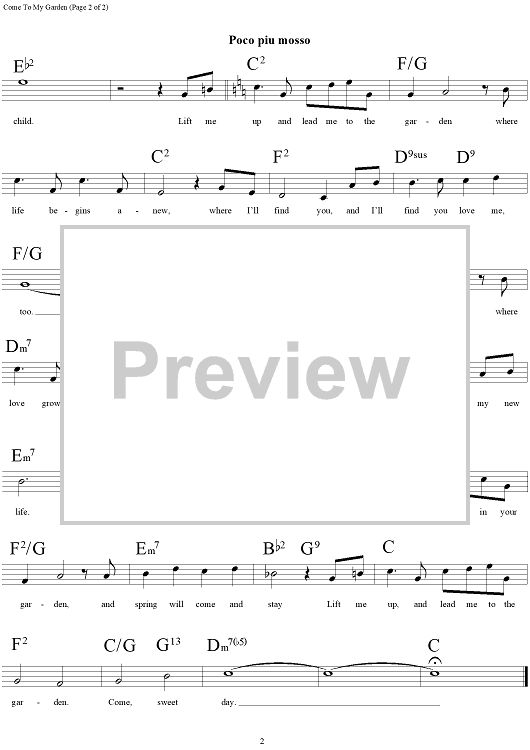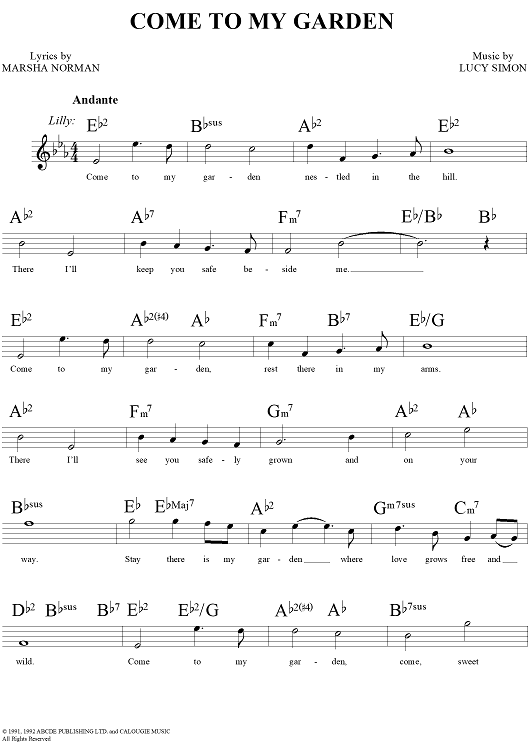 Digital Sheet Music for Come to My Garden by Lucy Simon, Marsha Norman scored for Lead Sheet; id:111633