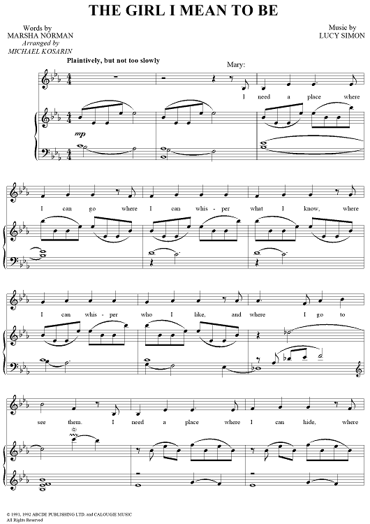 Digital Sheet Music for The Girl I Mean to Be by Lucy Simon, Marsha Norman scored for Piano/Vocal; id:120431