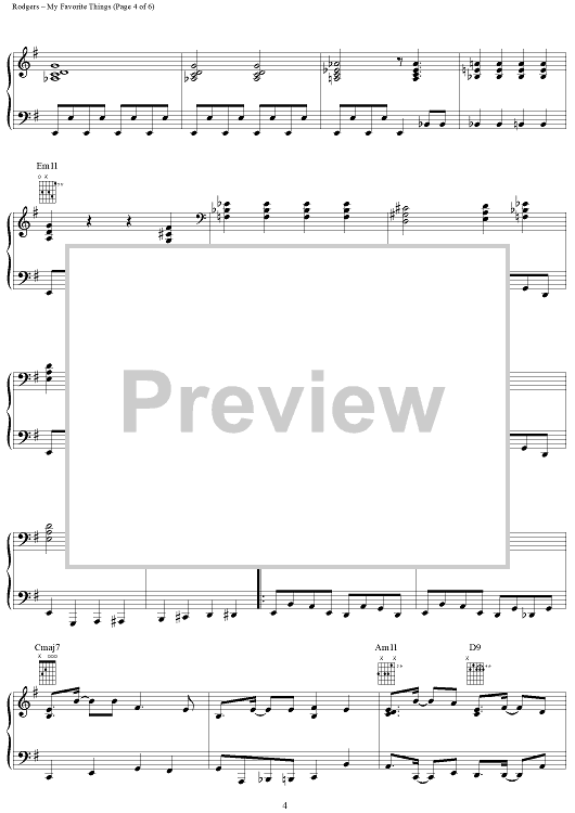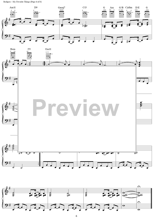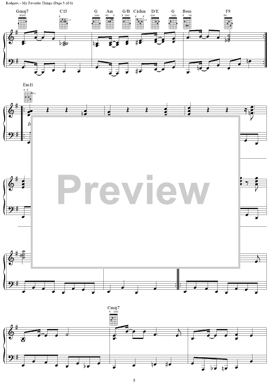 Digital Sheet Music for My Favorite Things by Richard Rodgers, Oscar Hammerstein II scored for Piano/Chords; id:367219