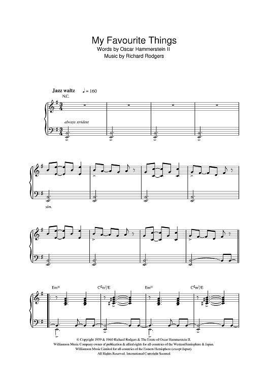 Digital Sheet Music for My Favorite Things by Richard Rodgers, Oscar Hammerstein II scored for Piano; id:386445