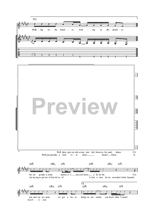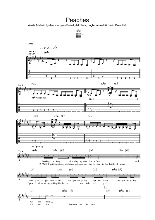 Digital Sheet Music for Peaches by Jet Black, Jean-Jacques Burnel, Hugh Cornwell, David Greenfield, The Stranglers scored for Guitar Tab; id:398829