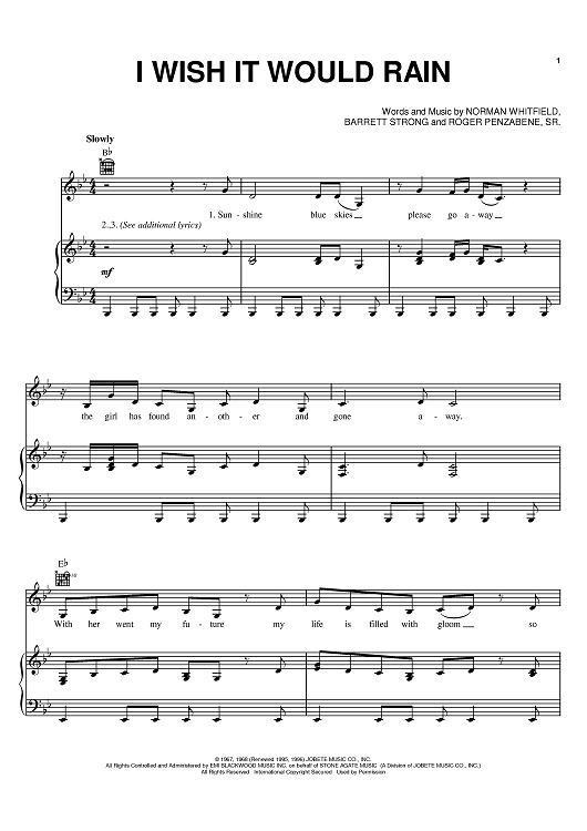 Digital Sheet Music for I Wish It Would Rain by Norman Jesse Whitfield, Barrett Strong, Roger Penzabene, The Temptations scored for Piano/Vocal/Chords; id:389728