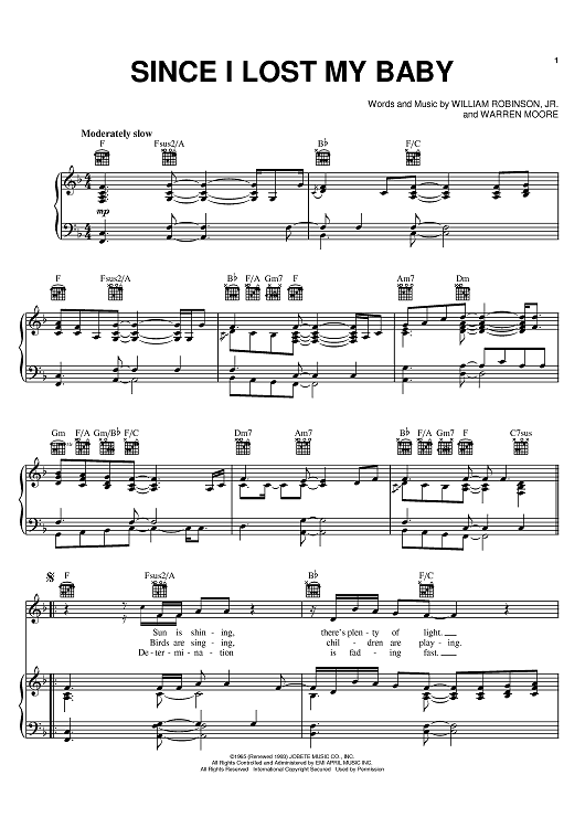 Digital Sheet Music for Since I Lost My Baby by Smokey Robinson, Warren Moore, The Temptations scored for Piano/Vocal/Chords; id:394865