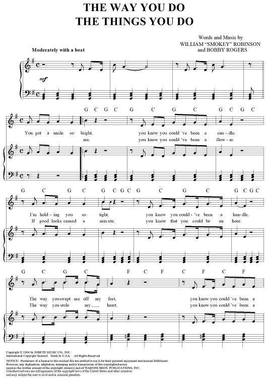 Digital Sheet Music for The Way You Do the Things You Do by Smokey Robinson, Robert Rogers, The Temptations scored for Piano/Vocal/Chords; id:255735