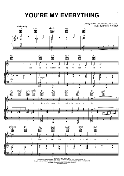Digital Sheet Music for You're My Everything by Nat King Cole, Harry Warren, Mort Dixon, The Temptations, Joseph Young scored for Piano/Vocal/Chords; id:381893