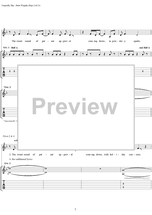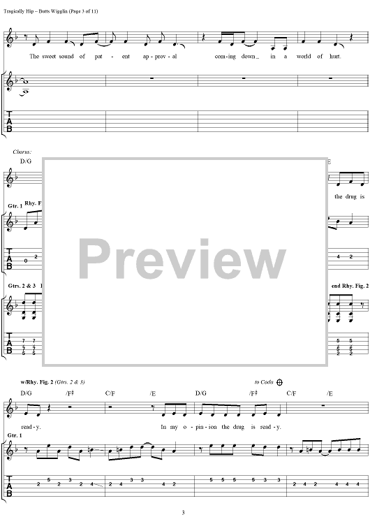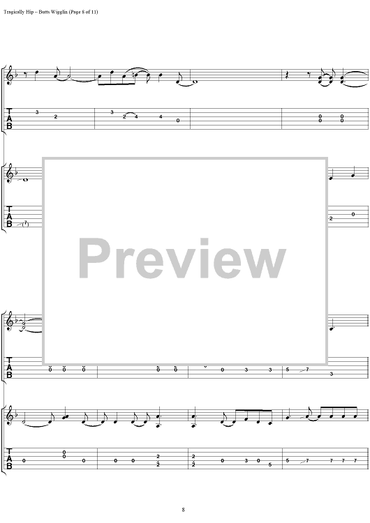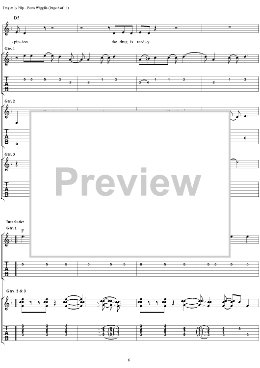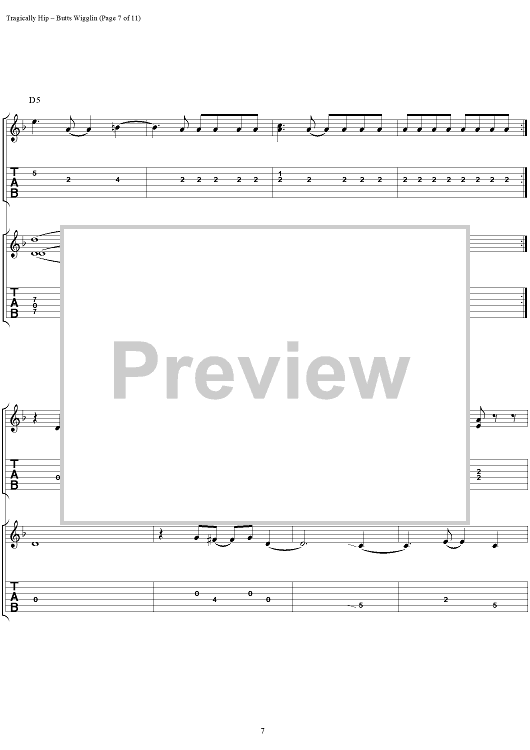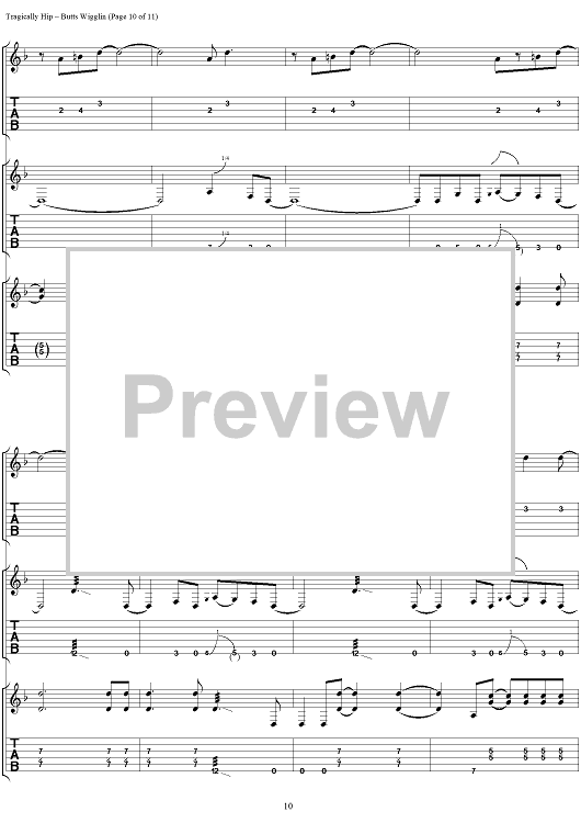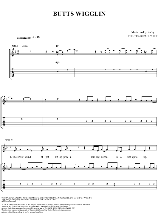 "Butts Wigglin" Sheet Music by The Tragically Hip