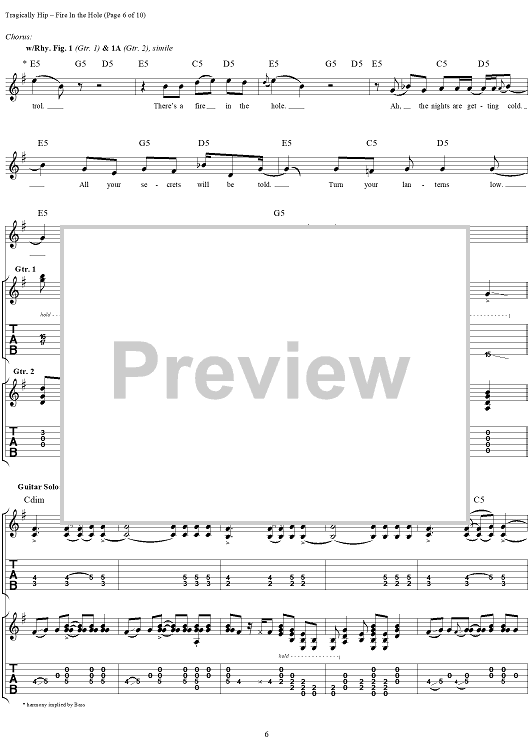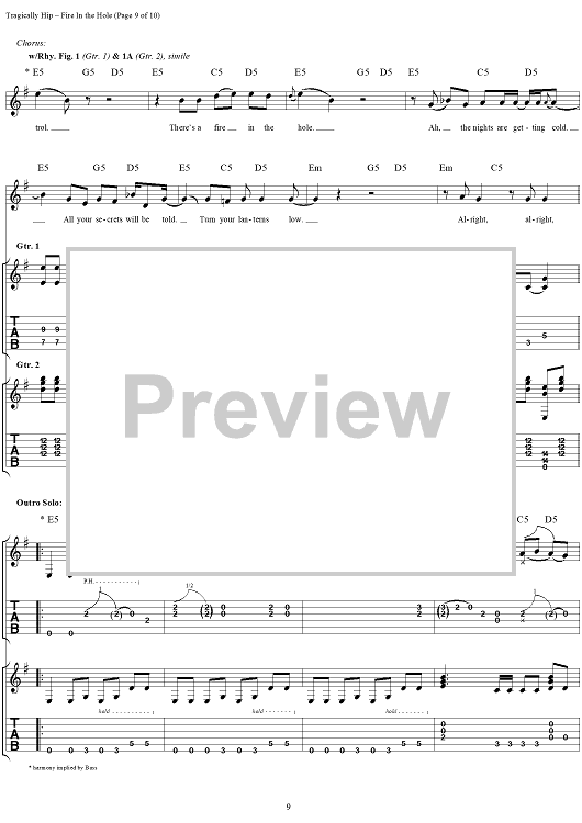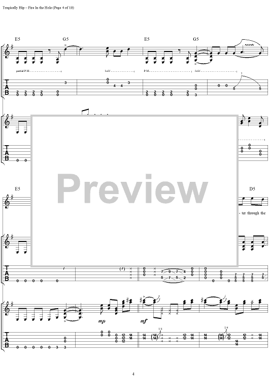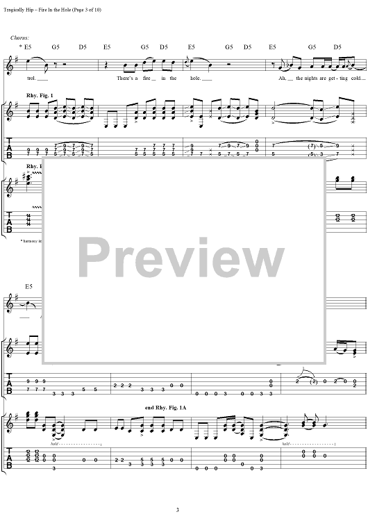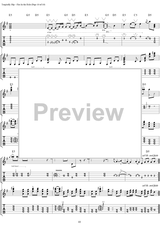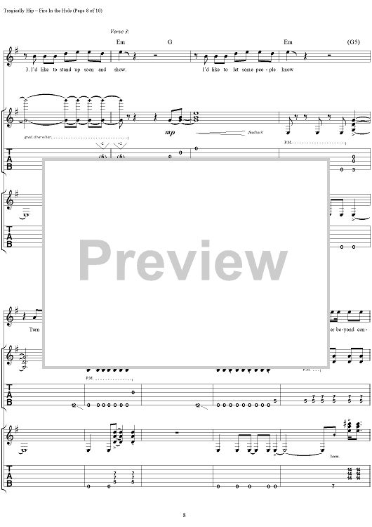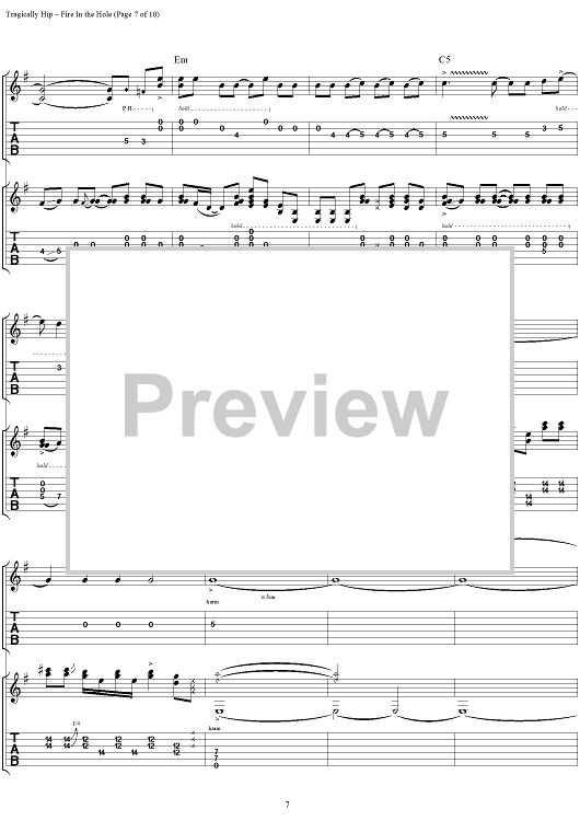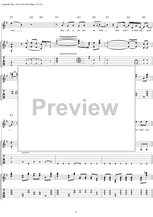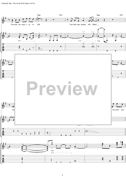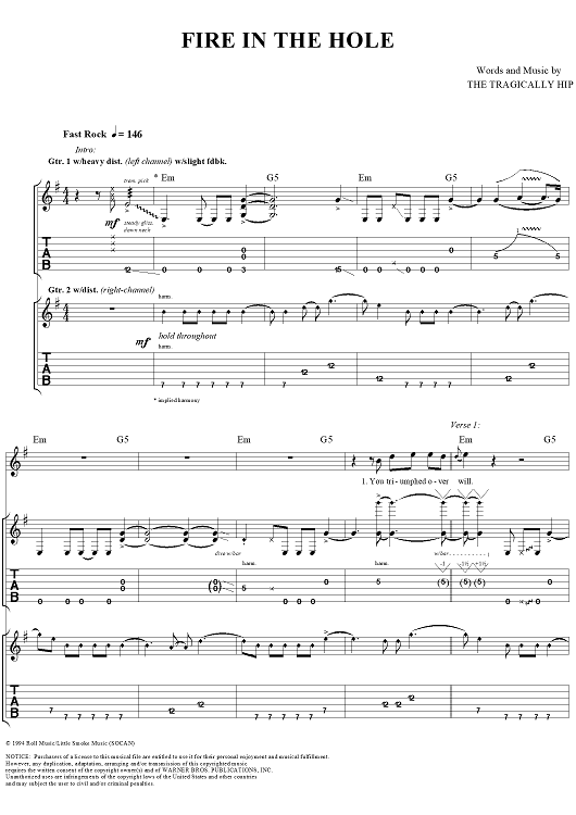 "Fire in the Hole" Sheet Music by The Tragically Hip