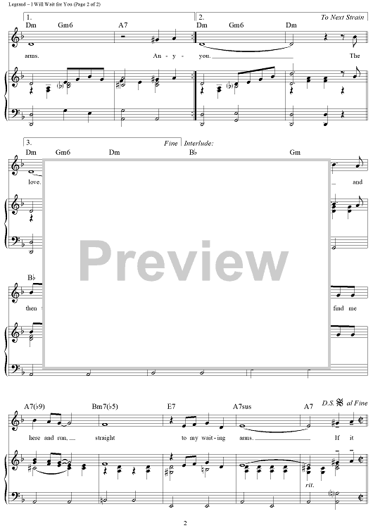 Digital Sheet Music for I Will Wait for You by Michel LeGrand, Norman Gimbel scored for Piano/Vocal/Chords; id:250554