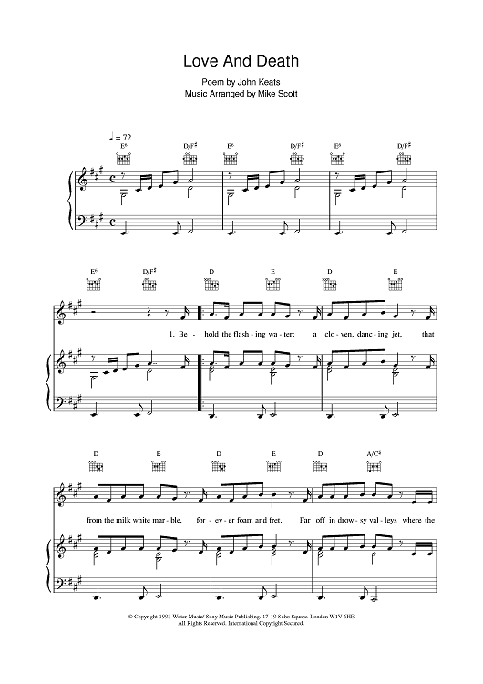 Digital Sheet Music for Love And Death by Scott,M, The Waterboys scored for Piano/Vocal/Chords; id:379653