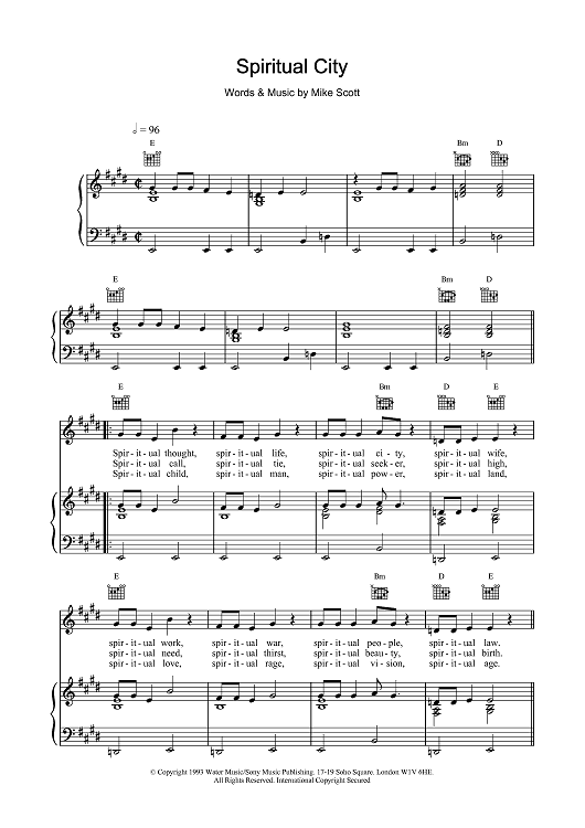Digital Sheet Music for Spiritual City by The Waterboys scored for Piano/Vocal/Chords; id:375873
