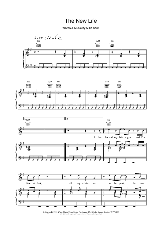 Digital Sheet Music for The New Life by Scott,M, The Waterboys scored for Piano/Vocal/Chords; id:379648