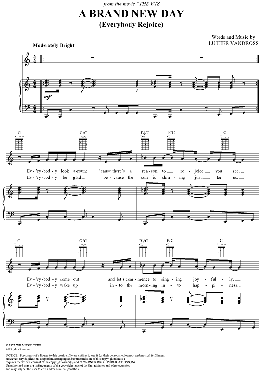 Digital Sheet Music for A Brand New Day (Everybody Rejoice) by Luther Vandross scored for Piano/Vocal/Chords; id:262338