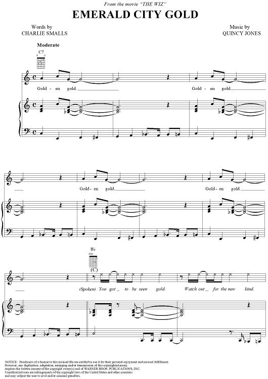 Digital Sheet Music for Emerald City Sequence: Emerald City Gold by Charlie Smalls, Quincy Jones scored for Piano/Vocal/Chords; id:265507